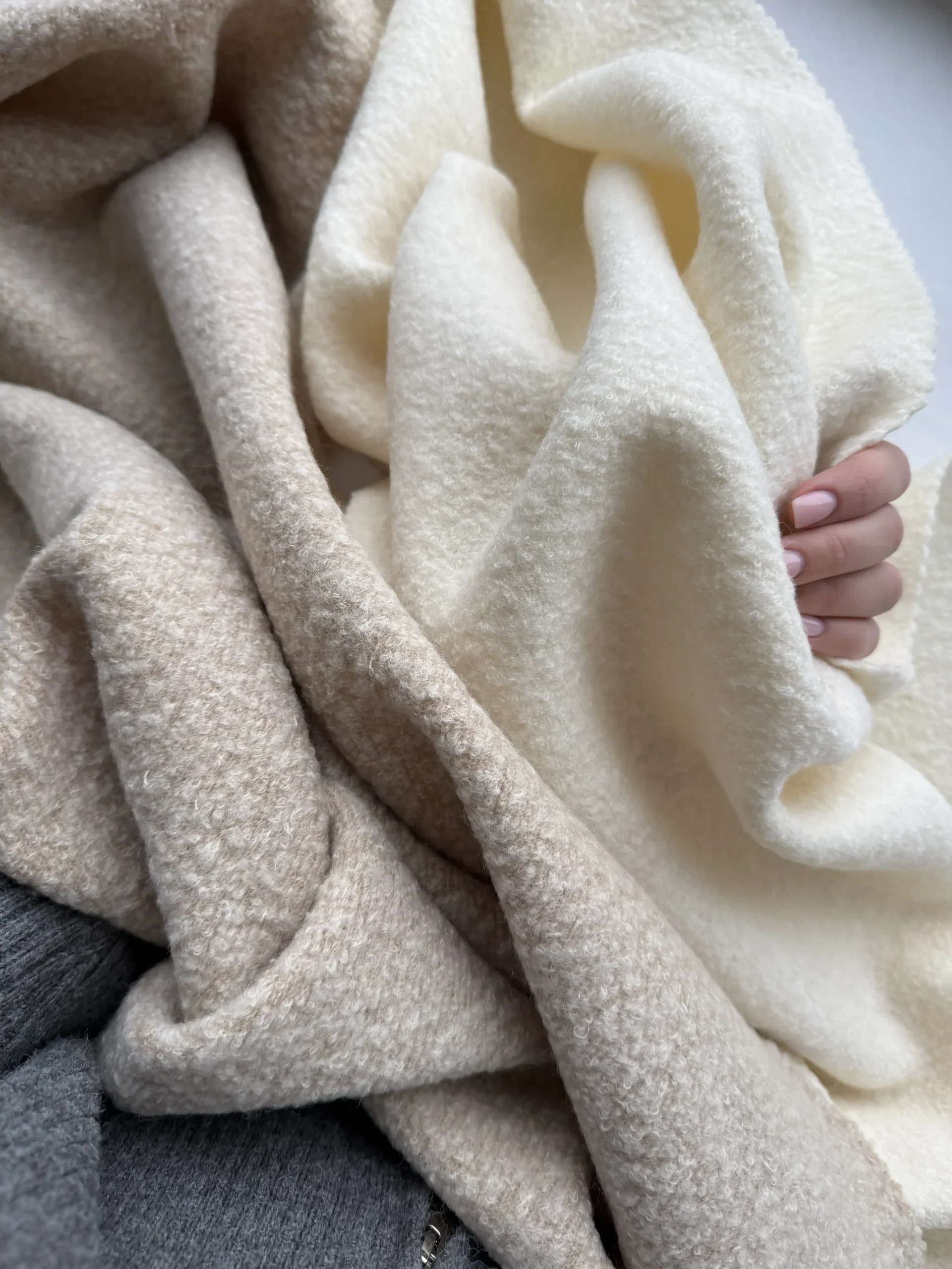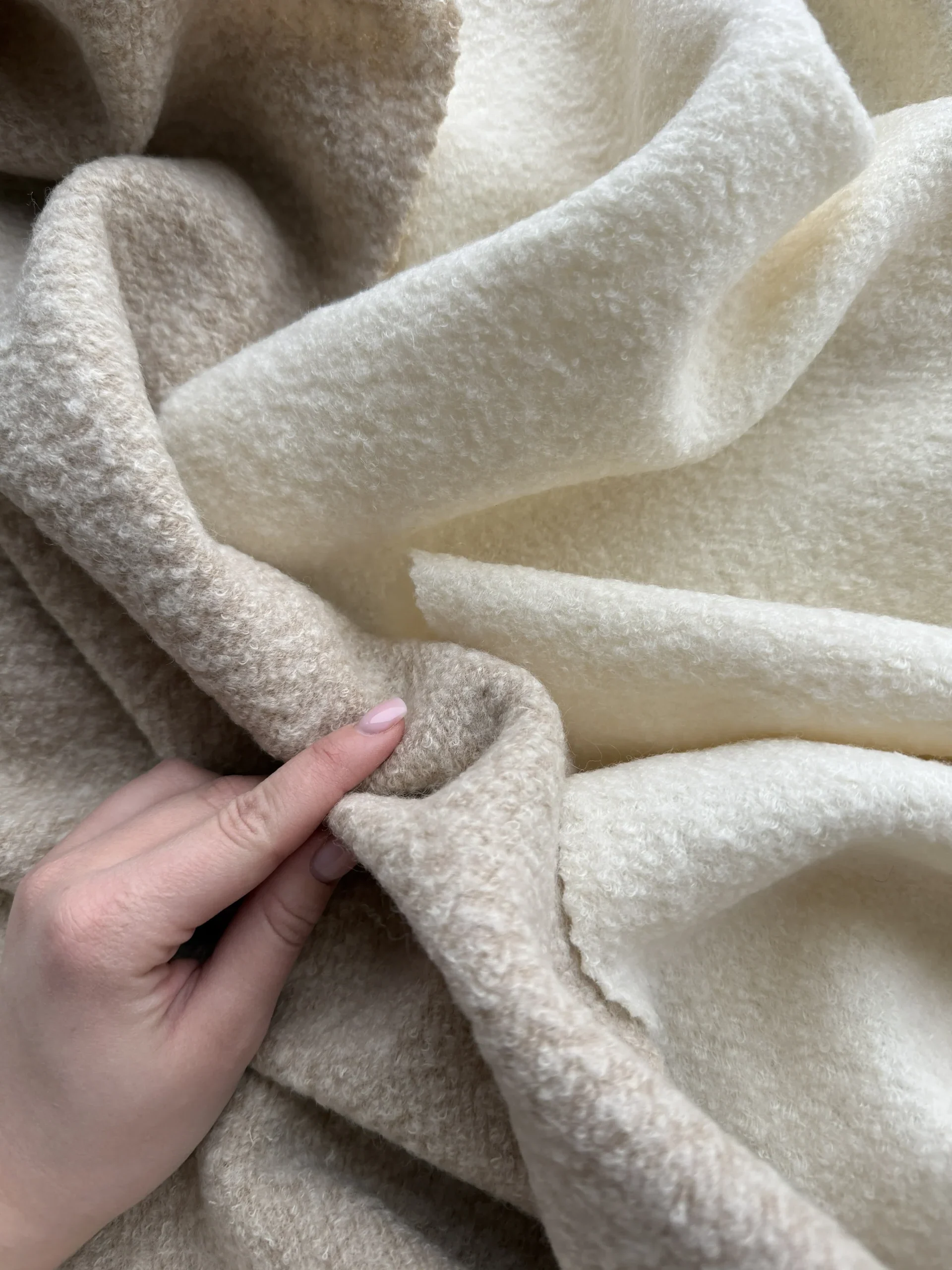 Ткань пальтовая шерсть букле 560 г/м2 «кремовый беж»